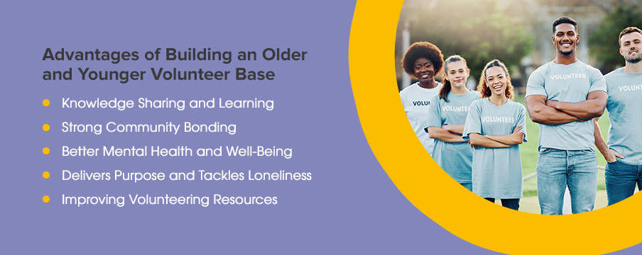 Volunteers of different generations can share their experiences and skills to benefit one another. Older volunteers offer professional skills, knowledge, and wisdom. Younger generations have technological expertise and fresh perspectives on specific issues.