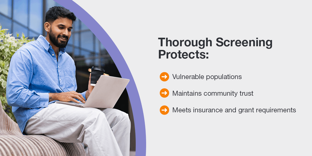 Thorough screening protects vulnerable populations, maintains community trust, and often meets insurance and grant requirements. The National Council of Nonprofits recognizes background checks as standard practice for risk management because the duty of care extends to everybody your volunteers interact with — staff, clients, and other volunteers.